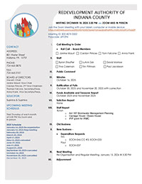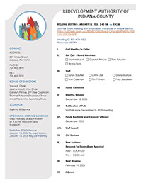 The monthly Indiana County Redevelopment Authority public meeting convenes every 3rd Thursday via Zoom until further notice.