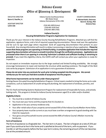 Housing Rehabilitation Programs Application