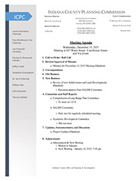 The monthly Indiana County Planning Commission public meeting convenes every 2nd Wednesday via Zoom until further notice.